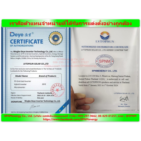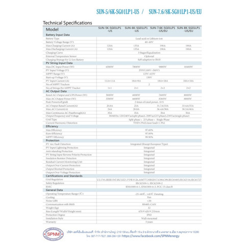 หมายเหตุ: หากลูกค้ามีข้อมูลหน้างาน เช่น ขนาดแผงที่ติดตั้ง, โหลดที่ใช้ต่อวัน, ต้องการกันย้อนหรือไม่, ใช้ไฟ 1/3 เฟส และต้องการแบตขนาดเท่าไร สามารถส่งรายละเอียดให้ทีม SPNM ช่วยเลือกสเปคที่เหมาะสมได้