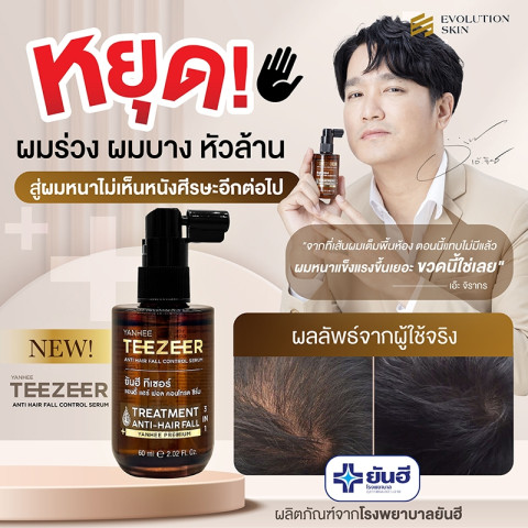 ยันฮี ทีเซอร์ YANHEE TEEZEER SERUM + Shampoo สูตรเข้มข้น ดูแลครบทั้งหนังศีรษะและเส้นผม ช่วยลดผมร่วง กระตุ้นการเกิดใหม่ของเส้นผม ฟื้นฟูผมบางให้ดูหนาขึ้น พร้อมเติมความชุ่มชื้นให้หนังศีรษะ เพื่อผมที่แข็งแรง นุ่มลื่น เงางามอย่างเป็นธรรมชาติ