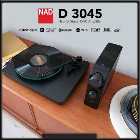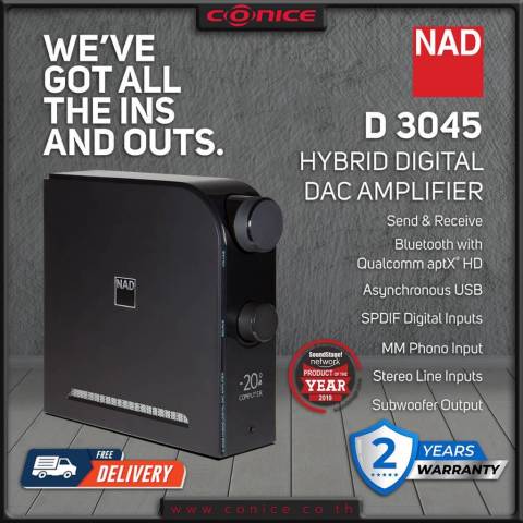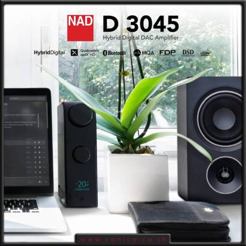 NAD D 3045 Hybrid Digital DAC Amplifier แอมป์ไฮบริดดิจิตอลรุ่นล่าสุดจาก NAD ที่รวม “แอมป์ + DAC + บลูทูธ + HDMI ARC” ไว้ในเครื่องเดียว ให้พลังเสียงเต็มอิ่ม คมชัด เงียบสนิทไร้เสียงรบกวน เหมาะทั้งฟังเพลงจริงจังและยกระดับเสียงจากทีวีอย่างมืออาชีพ ในราคา 31,500.00 บาท