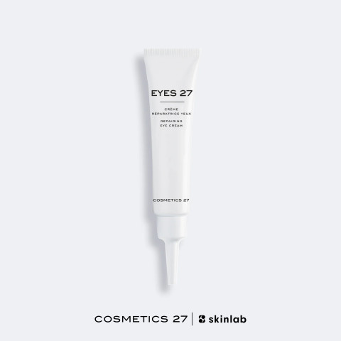 Cosmetics 27 EYES 27 15ml. อายครีมบำรุงรอบดวงตาสูตรเข้มข้น ที่ออกแบบมาเพื่อดูแลปัญหาหลักของผิวบริเวณรอบดวงตาอย่างตรงจุด ทั้งริ้วรอย ความหมองคล้ำ และความแห้งกร้าน ช่วยให้ผิวรอบดวงตาดูเรียบเนียน กระจ่างใส และดูสดชื่นขึ้นเมื่อใช้เป็นประจำ เหมาะสำหรับผู้ที่ต้องการยกระดับการดูแลรอบดวงตาด้วยผลิตภัณฑ์เนื้อสัมผัสสบายผิว ซึมไว และแต่งหน้าต่อได้โดยไม่เป็นคราบ