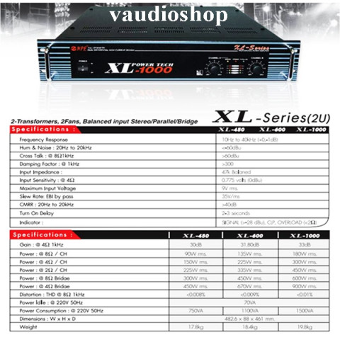 NPE XL-1000 เพาเวอร์แอมป์ (Power Amp) เครื่องขยายเสียงคุณภาพสำหรับงานเสียงกลางแจ้ง งานอีเวนต์ ระบบ PA หรือห้องซ้อม/ห้องคาราโอเกะที่ต้องการพลังขับแน่นๆ เสียงคมชัด และตอบสนองความถี่ได้กว้าง ให้ไดนามิกดี รายละเอียดเสียงครบ พร้อมสเปคแรง ขับลำโพงได้หลากหลายอิมพีแดนซ์ รองรับการใช้งานทั้งแบบสเตอริโอและบริดจ์ เหมาะสำหรับผู้ที่ต้องการแอมป์ “ตัวจบ” ที่ไว้ใจได้