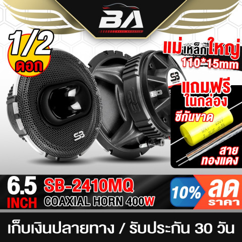 BA SOUND ลำโพงแกนร่วมปากแตร 6.5 นิ้ว 3WAY รุ่น SB-2410MQ พลังเสียงจัดเต็ม ครบรสทั้งเบส-กลาง-แหลม เหมาะสำหรับอัปเกรดเครื่องเสียง รถยนต์ หรือทำชุดลำโพง ใช้ในบ้าน ให้ดังไกล ชัดเจน ไม่แตกพร่า ด้วยดีไซน์โครงสร้างแข็งแรง แม่เหล็กใหญ่ อัดได้ยาว ๆ และติดตั้งง่าย เพียงต่อสายก็ใช้งานได้ทันที