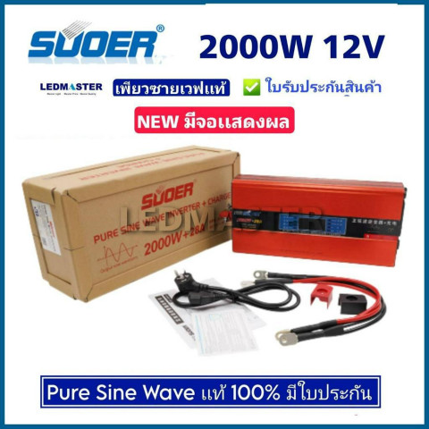 ✅SUOER (แท้-รุ่นใหม่ มีหน้าจอ) Power Inverter PURE SINE WAVE 2000W 12V/24V