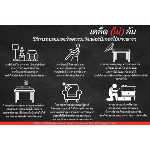 ไม่แนะนำให้ใช้งาน ภายนอกอาคาร หรือบริเวณความชื้นสูง เพราะอาจกระทบต่อสีและเนื้อไม้