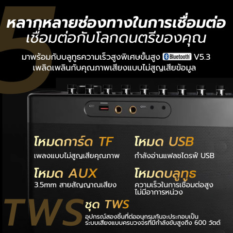 โครงสร้างลำโพงหลายยูนิต ช่วยแยกย่านเสียงให้ชัด ทั้งเสียงร้อง เครื่องดนตรี และเบสที่ลงลึกคาราโอเกะพร้อมใช้ มีไมค์ไร้สาย 2 ตัว