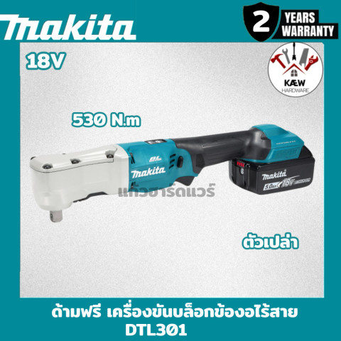 MAKITA เครื่องขันบล็อกข้องอ ด้ามฟรีไร้สาย 530N.m 18V รุ่น DTL301Z คือเครื่องมือสำหรับงานขัน-คลายน็อตที่ต้องการทั้ง แรงบิดสูง และ ความคล่องตัวในพื้นที่แคบ เหมาะอย่างยิ่งกับงานซ่อมบำรุงรถยนต์ งานเครื่องจักรกลการเกษตร และงานติดตั้ง/บำรุงรักษาที่เข้าถึงยาก โดยให้แรงบิดสูงสุดถึง 530 N·m ช่วยคลายสลักเกลียวที่ติดแน่นได้อย่างมั่นใจ พร้อมดีไซน์หัวเครื่องมือบางและสมดุลการจับถือที่ดี ลดความเมื่อยล้าเมื่อใช้งานต่อเนื่อง