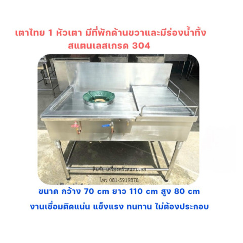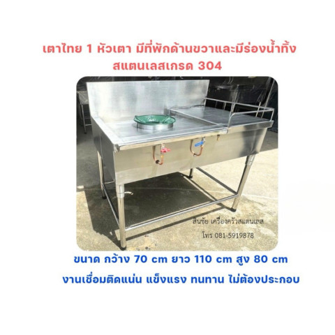 แบบเตา 1 หัวเตา มีร่องน้ำทิ้ง: กว้าง 75 ซม. x ยาว 65 ซม. x สูง 80 ซม.