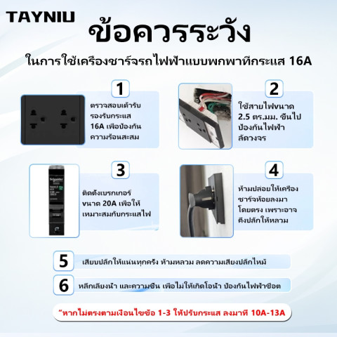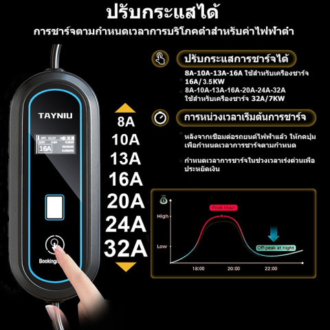 TAYNIU Type2 16A 3.5KW เครื่องชาร์จ EV แบบพกพา รองรับการควบคุมผ่าน WiFi APP พร้อมฟังก์ชั่นปรับกระแสไฟฟ้าและระบบป้องกันหลายระบบ ราคา 3,485.00 บาท