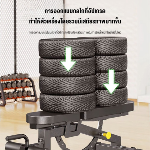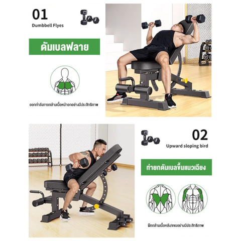 ใช้งานได้หลากหลาย 6in1 เช่น ที่รองแขน, ม้านั่งดัมเบล, กระดานหงาย, เก้าอี้โรมัน, ม้านั่งแบน และฟิตเนสหลายทิศทาง