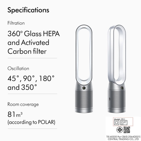 (Bundle set) Dyson Purifier Cool PC1 (White/Silver) ชุดเซตเครื่องฟอกอากาศไดสันสีขาว/เงิน ที่รวมทั้ง “ฟอกอากาศทั่วห้อง” และ “พัดลมลมเย็น” ไว้ในเครื่องเดียว เหมาะสำหรับบ้านหรือคอนโดที่ต้องการอากาศสะอาด พร้อมลมสบายในช่วงอากาศร้อน ครบทั้งการตรวจวัดคุณภาพอากาศแบบเรียลไทม์ การกรองแบบซีลปิด และการควบคุมอัจฉริยะผ่านแอพฯ/เสียง