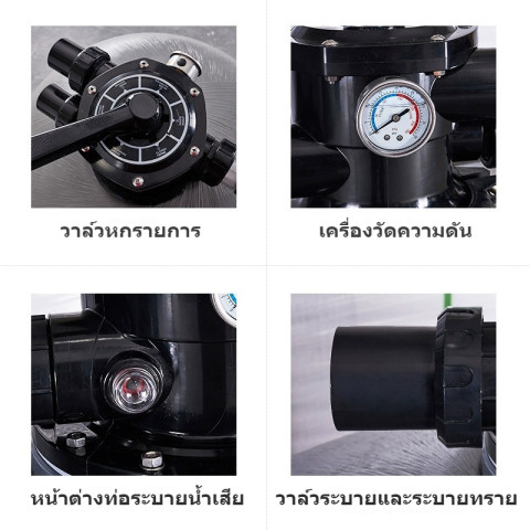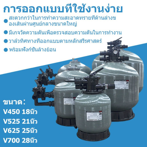 ถังกรองทรายคุณภาพสูงสำหรับสระว่ายน้ำ ช่วยให้น้ำใสสะอาด ลดสิ่งสกปรกและตะกอนในระบบหมุนเวียนน้ำ เหมาะทั้งงานบ้านพักอาศัยและงานติดตั้งที่ต้องการความทนทาน โดยออกแบบเป็นแบบ Top Mount พร้อมวาล์วมัลติพอร์ตใช้งานสะดวก ครบจบในชุดเดียว