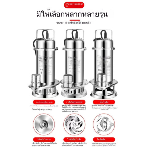 ปั๊มจุ่มสแตนเลส 304 220V ทางเลือกสำหรับงานสูบน้ำที่ต้องการทั้ง “ความอึด” และ “แรงยกน้ำ” ตัวเรือนสแตนเลสแท้ทนการกัดกร่อน ทนกรด-ด่างได้ดี เหมาะทั้งงานดูดน้ำเสีย งานเกษตร งานระบายน้ำท่วมขัง ไปจนถึงบ้านพักอาศัย ใช้งานสะดวก ติดตั้งง่าย ช่วยลดภาระการจัดการน้ำได้อย่างมีประสิทธิภาพ