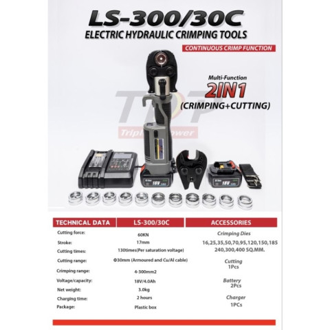 งานไฟฟ้ามืออาชีพต้องการทั้ง “แรงย้ำที่มั่นใจ” และ “การตัดที่รวดเร็วแม่นยำ” รุ่น LS300/30C คือเครื่องย้ำหางปลาและตัดสายไฟแบบอัตโนมัติระบบไฮดรอลิค ที่ช่วยยกระดับงานติดตั้ง/ซ่อมบำรุงให้จบไว ย้ำแน่น ย้ำสวย พร้อมพกพาใช้งานหน้างานได้สะดวก