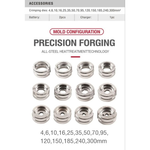 ชุดหัวไดส์ 12 ไซด์: 10 / 16 / 25 / 35 / 50 / 70 / 95 / 120 / 150 / 185 / 240 / 300
