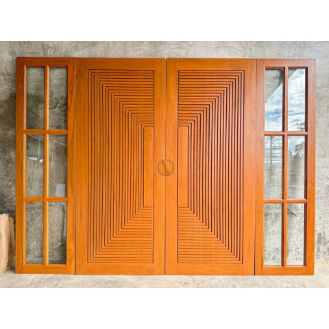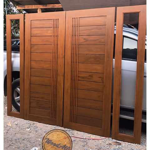 ประเภท: ประตูหน้าบ้านไม้สักทอง แบบ 4 บาน
