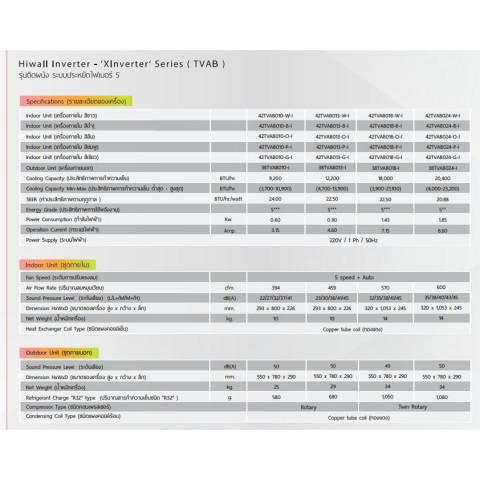 เบอร์ 5 5 ดาว (9,200 / 12,200 / 18,000 BTU)