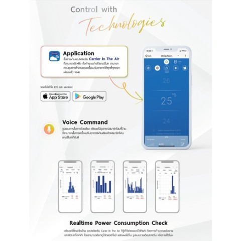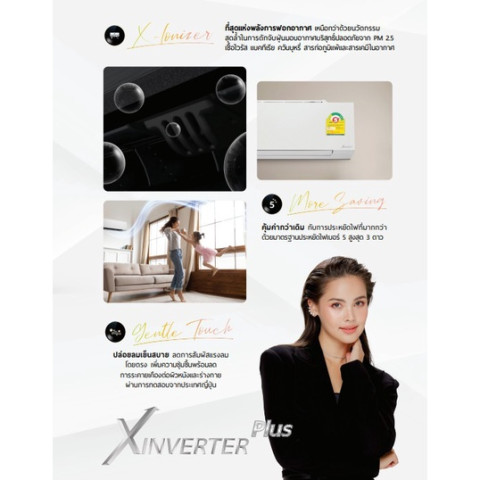DC INVERTER ประหยัดไฟกว่าแอร์ปกติได้สูงสุด ~30% ควบคุมรอบคอมเพรสเซอร์อย่างมีประสิทธิภาพ เย็นไว อุณหภูมิคงที่