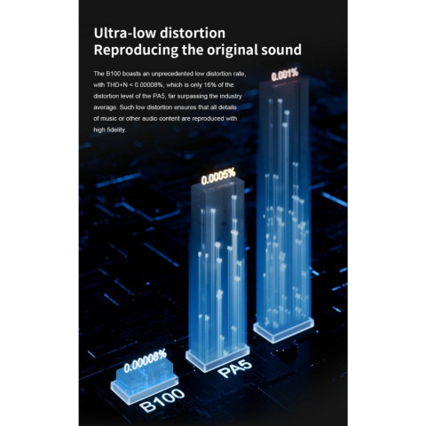 ให้ค่า SNR 151 dB และ DNR 151 dB พร้อมระดับเสียงรบกวนจริง <0.3uVrms @G=L ช่วยดึงรายละเอียดเล็กๆ และความซับซ้อนของเพลงออกมาได้ชัดเจนความเพี้ยนต่ำเป็นพิเศษ ใกล้เคียงต้นฉบับ