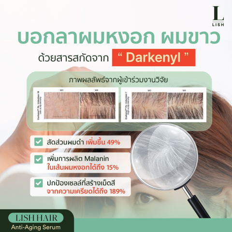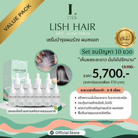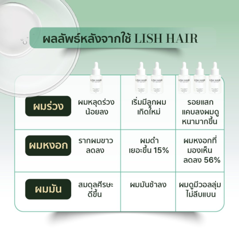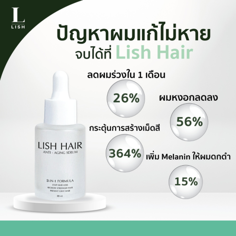 [ร้านOfficial] Lish Hair Serum เซรั่มบำรุงเส้นผมสูตรเข้มข้นสำหรับผู้ที่กังวลเรื่องผมหงอก ผมบาง ขาดหลุดร่วง และต้องการฟื้นฟูหนังศีรษะให้แข็งแรง พร้อมช่วยกระตุ้นการเกิดผมใหม่ให้ดูดกขึ้นอย่างเป็นธรรมชาติ เหมาะกับการดูแลเป็นประจำทุกวัน เพื่อผลลัพธ์ที่สม่ำเสมอและเห็นความเปลี่ยนแปลงได้ชัดเจน