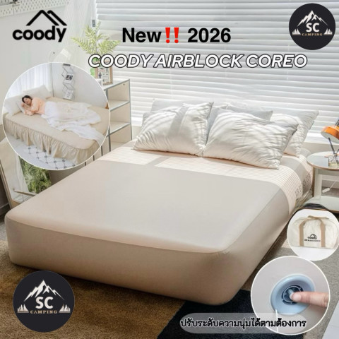 Coody Air Block Coreo Bed New 2026‼️ ที่นอนเป่าลมหนา 35 cm น้ำหนักเบา นอนสบายมากๆ พร้อมกระเป๋าพกพา ในราคา 6,400.00 บาท เหมาะทั้งใช้ในบ้าน แคมป์ปิ้ง หรือเป็นเตียงเสริมสำหรับแขก จัดเก็บกะทัดรัด พกไปไหนก็ง่าย หลับเต็มอิ่มได้ทุกที่