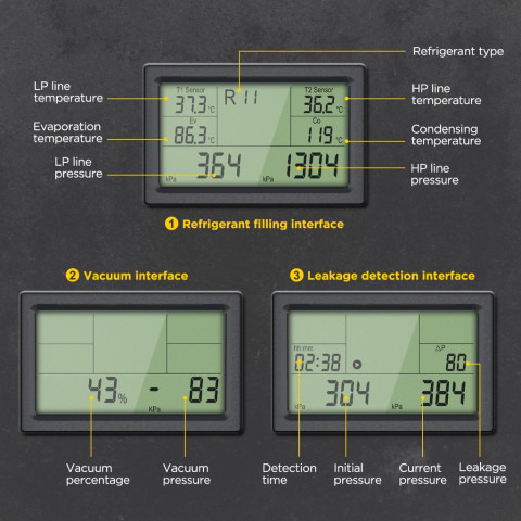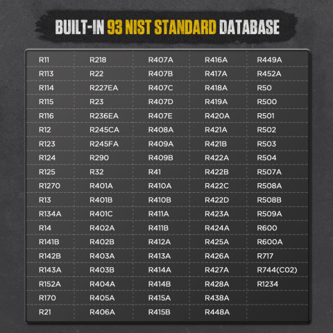 รองรับสารทำความเย็น 93 ชนิด เลือกชนิดสารทำความเย็นเพื่อความแม่นยำในการตรวจวัด