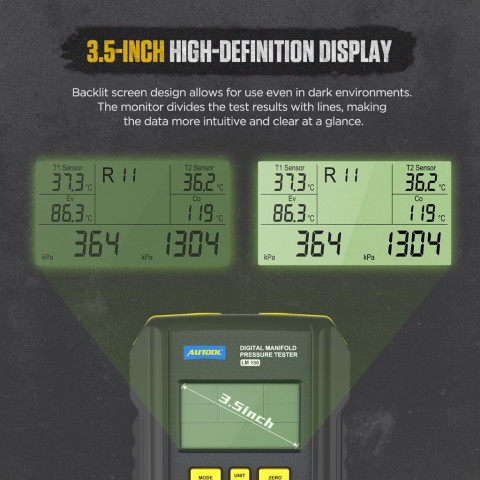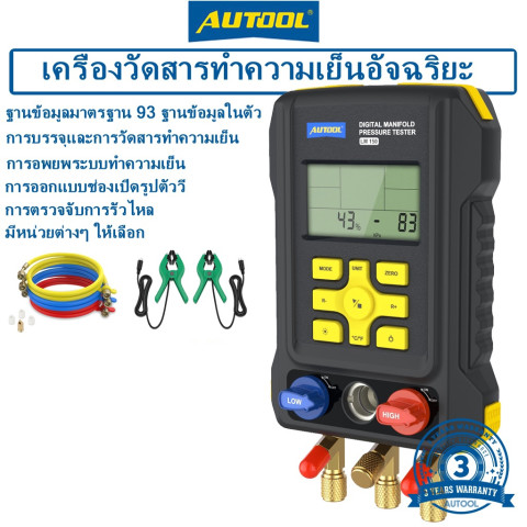 AUTOOL LM150 มาตรวัด Manifold แบบดิจิตอล เครื่องมือช่าง HVAC ที่ช่วยให้การเติมสารทำความเย็น ตรวจสอบแรงดัน วัดสูญญากาศ และทดสอบอุณหภูมิทำได้อย่างแม่นยำและรวดเร็วในเครื่องเดียว รองรับสารทำความเย็นให้เลือกมากถึง 93 ชนิด เหมาะทั้งงานซ่อมบำรุงเครื่องปรับอากาศและระบบทำความเย็นทั่วไปที่ต้องการความน่าเชื่อถือสูง