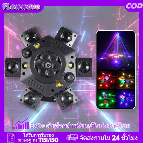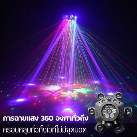 แหล่งกำเนิดแสง: LED RGBW 10W x 6 + LED ลวดลาย 3W x 6 + เลเซอร์แดง–เขียว + สโตรบ 2 สี