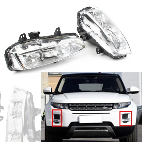 คู่ไฟตัดหมอกกันชนหน้า สำหรับ Land Rover Range Rover Evoque 2012-2015 อะไหล่ทดแทนตรงรุ่น เลนส์ใส แสงสีขาว ดีไซน์เข้ากับกันชนหน้าเดิม ช่วยเพิ่มทัศนวิสัยและความปลอดภัยในการขับขี่ พร้อมหมายเลขอะไหล่ LR026089 / LR026090