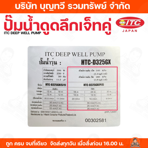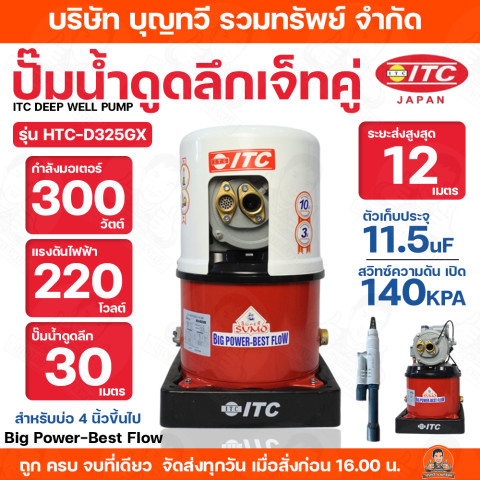 ปั้มดูดน้ำลึกเจ็ทคู่ รุ่น HTC-D325GX PJ1 (รุ่นใหม่ 2021) ตัวช่วยสำคัญสำหรับงานสูบน้ำจากบ่อลึก ตอบโจทย์บ้านพักอาศัย สวน เกษตร และงานระบบน้ำที่ต้องการแรงดูดดีและทำงานเสถียร เหมาะสำหรับ บ่อขนาด 4 นิ้วขึ้นไป ด้วยระบบ เจ็ทคู่ ช่วยเพิ่มประสิทธิภาพการดูดน้ำลึก ใช้งานได้มั่นใจในทุกวัน