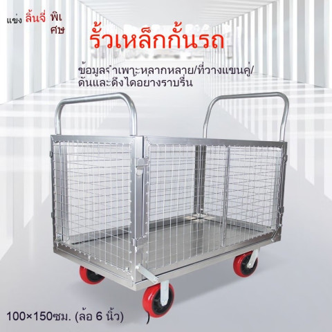 รถเข็นพื้นเรียบพร้อมรั้วเหล็กแผ่น ตัวช่วยขนย้ายของในโรงงาน เวิร์คชอป โกดัง และงานโลจิสติกส์ ออกแบบมาเพื่อรองรับการขนส่งที่ต้องการความคล่องตัว ลดแรงยก ลดเวลาในการเคลื่อนย้าย เหมาะทั้งงานจัดเก็บสินค้าและงานขนส่งภายในพื้นที่ใช้งานต่าง ๆ ในราคาคุ้มค่า 5897.70