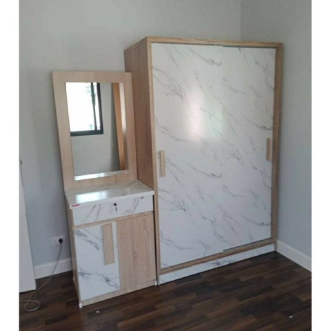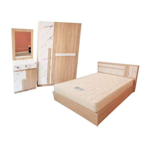 ชุดห้องนอน 5 ฟุต รุ่น สวอน ดีไซน์สวยลงตัว โทนลายโอ๊ค/หินอ่อน ให้ลุคอบอุ่นทันสมัย จัดห้องนอนได้ครบในชุดเดียว ทั้งเตียง ตู้เสื้อผ้า และโต๊ะเครื่องแป้ง พร้อมแถมฟรี! ที่นอนสปริงตามขนาดชุด คุ้มค่า เหมาะสำหรับคนที่อยากได้ห้องนอนใหม่แบบจบครบในครั้งเดียว