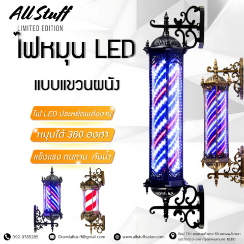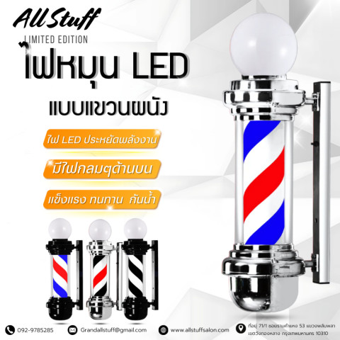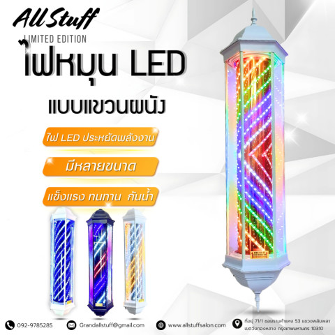 ไฟหมุน LED ร้านเสริมสวย/ร้านตัดผม/บาร์เบอร์ (สเปค ขาว-เหลือง 200cm) ไอเท็มหน้าร้านที่ช่วยเรียกลูกค้าได้ทันทีด้วยแสงไฟเด่นชัดและเอฟเฟกต์ไฟหมุนสุดสะดุดตา ดีไซน์สวยหรู ดูแพง เสริมภาพลักษณ์ร้านให้มืออาชีพตั้งแต่แรกเห็น เหมาะทั้งติดตั้งภายนอกและภายในอาคาร พร้อมความทนทานสำหรับการใช้งานต่อเนื่องยาวนาน