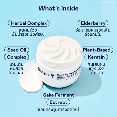 เปลี่ยนผมเสียหนักให้กลับมาสุขภาพดีมีน้ำหนักด้วย DIVYNE Strand Strengthen Hair Masque 236 ml มาส์กบำรุงผมสูตรใหม่ที่ยกระดับการฟื้นบำรุงล้ำลึกขึ้น X2 สำหรับผู้ที่มีปัญหาเส้นผมแห้งเสียจากความร้อน การทำสี การฟอก หรือการทำเคมีบ่อยครั้ง ช่วยลดผมร่วง ผมแห้งแตกปลาย พร้อมบำรุงหนังศีรษะให้สมดุลในขั้นตอนเดียว