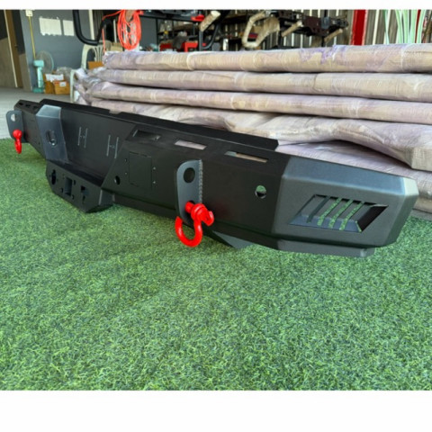 อัปเกรดท้ายรถให้ดุดัน แข็งแรง และใช้งานได้จริงด้วย กันชนท้ายออฟโรด กันชนท้ายเหล็กดำ off road มีที่เหยียบ ขึ้น/ลง เสริมความแข็งแรงท้ายรถ (พรีห่วงแดง) ออกแบบมาเพื่อสายลุยโดยเฉพาะ แข็งแรง ทนทาน ช่วยปกป้องท้ายรถ และเพิ่มความสะดวกในการขึ้น-ลง รวมถึงรองรับการลากจูงได้เป็นอย่างดี เหมาะสำหรับติดตั้งในรถกระบะสายลุยอย่าง REVO และผู้ที่ต้องการสไตล์ออฟโรดเต็มรูปแบบ