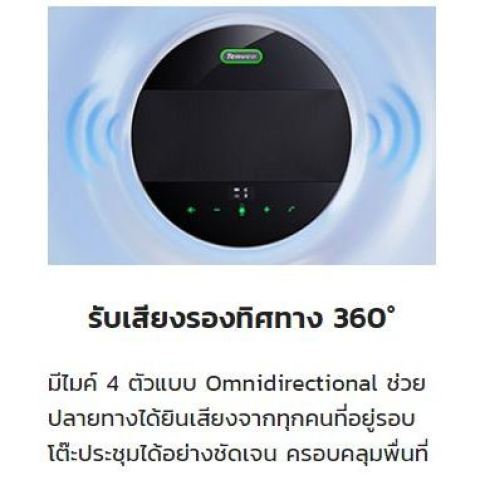 ไมค์ Array 4 ตัว รับเสียงรอบทิศทาง 360° เก็บเสียงผู้ร่วมประชุมรอบโต๊ะได้ชัด ครอบคลุมระยะไกลถึง 6 เมตร