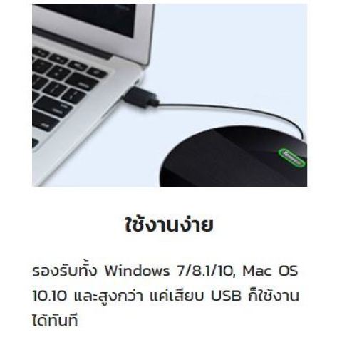 Plug & Play ผ่าน USB รองรับ Windows 7/8.1/10 และ Mac OS 10.10 ขึ้นไป เสียบแล้วใช้งานได้ทันที