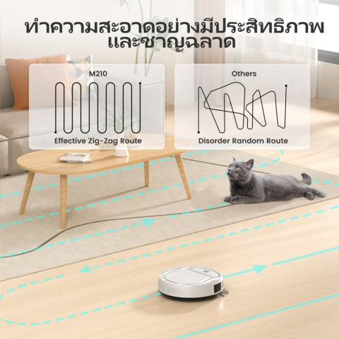 *รองรับเฉพาะ Wi‑Fi 2.4GHzโหมดทำความสะอาด 4 โหมด เลือกได้ตามพื้นที่และพฤติกรรมการใช้งาน: อัตโนมัติ / เฉพาะจุด / ตามขอบ-ผนัง / ซิกแซก (เป็นระเบียบ)