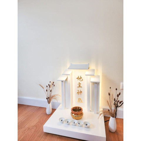 ดีไซน์แบบ Minimal ลดทอนรายละเอียดที่รกรุงรัง แต่ยังคงเอกลักษณ์ของศาลเจ้าที่จีน พร้อมเส้นสายที่สะอาดตา ช่วยให้เข้ากับการตกแต่งสไตล์โมเดิร์นได้อย่างลงตัว เพิ่มความอบอุ่นด้วยการโชว์ลายไม้ธรรมชาติ ผสานสีมงคลแบบดั้งเดิม สร้างสมดุลทั้งด้านความเชื่อและความสวยงาม