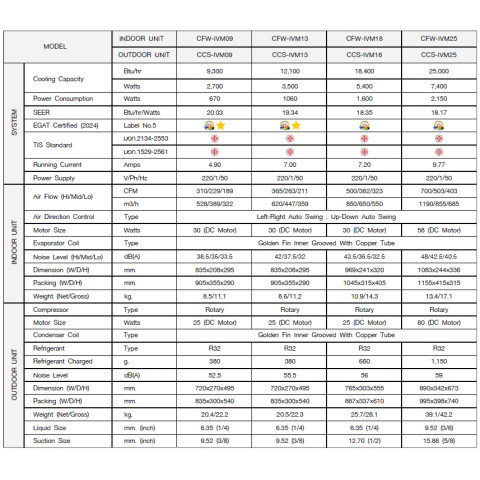 มีให้เลือกตั้งแต่ 9300-28000 BTU รองรับทั้งห้องขนาดเล็กจนถึงห้องขนาดใหญ่
