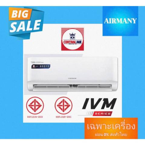 แอร์ผนัง CENTRAL AIR รุ่น IVM INVERTER ตัวเดียวครบทั้งประหยัดไฟ เย็นเร็ว เงียบ ทนทาน พร้อมฟังก์ชันเพื่อสุขภาพและความสะดวกสบาย เหมาะสำหรับผู้ที่มองหาแอร์คุณภาพสูง คุ้มค่าในระยะยาว ทั้งแบบเฉพาะเครื่องและแบบพร้อมติดตั้ง