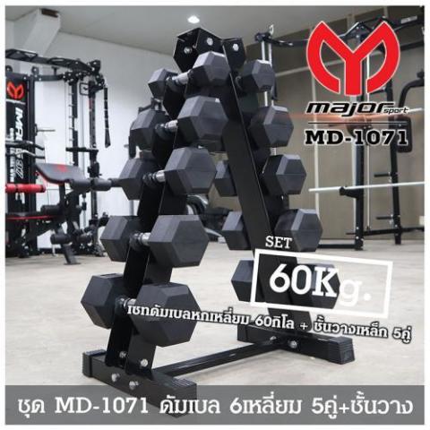 ยกระดับมุมฟิตเนสที่บ้านหรือยิมส่วนตัวของคุณให้เป็นมืออาชีพด้วย ชุดดัมเบลหกเหลี่ยม 60Kg. 5 คู่ พร้อมชั้นวางดัมเบลเหล็กทรง A รุ่น MD-1071 จาก MAJOR SPORT เซ็ตเดียวครบทั้งดัมเบลและชั้นวาง ดีไซน์สวย แข็งแรง ปลอดภัย และใช้งานง่าย เหมาะสำหรับทั้งผู้เริ่มต้นและสายฟิตเนสตัวจริง