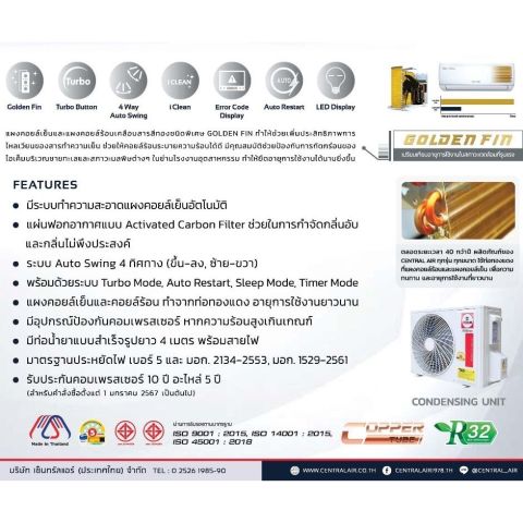 แอร์ติดผนัง CENTRAL AIR IVJS SERIES เหมาะสำหรับผู้ที่ต้องการแอร์อินเวอร์เตอร์ประหยัดไฟ ฟังก์ชันครบ ใช้งานทนทาน พร้อมบริการติดตั้งและอุปกรณ์มาตรฐานครบชุดในราคาเดียว ช่วยให้คุณได้ความเย็นสบายคุ้มค่าทั้งระยะสั้นและระยะยาว