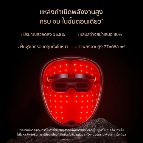 พลังงานแสงความหนาแน่นสูง 77 mW/cm² สูงกว่าหน้ากากทั่วไปในตลาด (โดยมากประมาณ 50 mW/cm²) ช่วยให้เห็นผลได้อย่างมีประสิทธิภาพ
