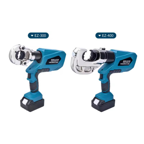 EC-300 / EC-400 คีมไฮดรอลิกย้ำสายไฟแบบชาร์จไฟได้ ชุดพร้อมใช้งาน (แบตเตอรี่ 2 ก้อน + เครื่องชาร์จ 1 เครื่อง) เหมาะสำหรับงานย้ำหางปลาแบบหัวหกเหลี่ยม ให้แรงย้ำสม่ำเสมอ งานแน่นสวย ลดความเมื่อยล้าจากการใช้แรงมือ พร้อมหัวคีมหมุนได้ 360° ทำงานในพื้นที่แคบได้คล่องตัว
