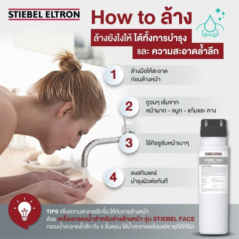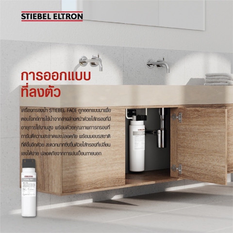 Stiebel Eltron เครื่องกรองน้ำสำหรับอ่างล้างหน้า รุ่น STIEBEL FACE ราคา 8,730.50 บาท ตัวช่วยยกระดับน้ำที่ใช้ล้างหน้าและแปรงฟันให้สะอาดยิ่งขึ้น ด้วยฟิลเตอร์แบบห่อหุ้มขนาดกะทัดรัดที่รวมการกรอง 4 ขั้นตอนใน 1 ออกแบบมาโดยเฉพาะสำหรับอ่างล้างหน้า ให้การไหลของน้ำแรงทันทีโดยไม่สิ้นเปลืองน้ำ พร้อมติดตั้งแบบ Plug & Play ไม่ต้องใช้ไฟฟ้าและไม่ต้องมีถังเก็บ ประหยัดพื้นที่และใช้งานง่ายในทุกวัน