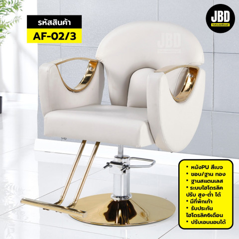 เติมภาพลักษณ์ซาลอนของคุณให้ดูมืออาชีพด้วย JBD storehouse เก้าอี้ร้านทำผม เก้าอี้ร้านเสริมสวย ปรับเอนนอนได้ ไฮโดรลิคปรับสูง-ต่ำได้ รหัส AF-02 เก้าอี้ดีไซน์สวย ทันสมัย แข็งแรง รองรับการใช้งานในร้านทำผม ร้านเสริมสวย และบาร์เบอร์ได้อย่างลงตัว ทั้งงานตัด ซอย ทำสี และทรีทเม้นท์