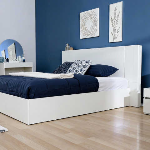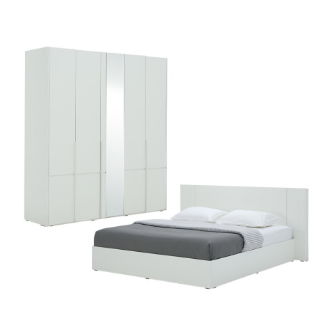 ใน 1 ชุด ประกอบด้วยเตียงนอนขนาด 5 ฟุต และตู้เสื้อผ้า 5 บานพร้อมกระจก โทนสีขาวสะอาดตา ช่วยให้ห้องดูกว้าง โปร่ง และเข้ากับของตกแต่งได้หลากสไตล์ ไม่ว่าจะเป็นโทนมินิมอล สแกนดิเนเวียน หรือโมเดิร์นคอนเทมโพรารี