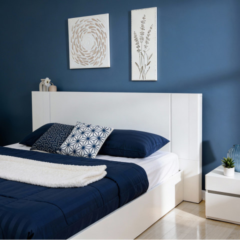 หัวเตียงมีพื้นที่วางของ พร้อมกล่องกันตก เหมาะสำหรับวางหนังสือ นาฬิกาปลุก โคมไฟ หรือของใช้ส่วนตัว