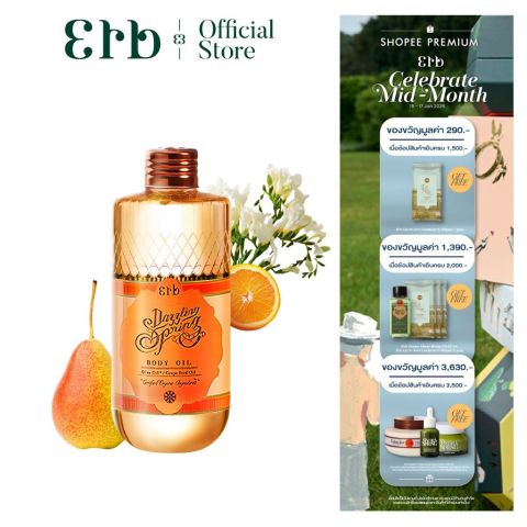 [ Best seller ] Erb Dazzling Spring Body Oil 230ml ออยล์ทาผิวโกลว์ กลิ่นสวีทออเรนจ์ ผิวชุ่มชื้น หอมดอกพรีเซีย ราคาเพียง 969 บาท เติมประกายโกลว์ใสให้ผิวสวย พร้อมกลิ่นหอมละมุนแบบสปาชั้นสูงในทุกวัน