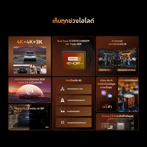 ความคมชัดสูงสุดระดับ 4K HDR – กล้องหน้าคุณภาพสูง เก็บทุกป้ายทะเบียนและรายละเอียดบนท้องถนนได้ชัดเจนแม้ในสภาพแสงย้อนหรือแสงน้อย